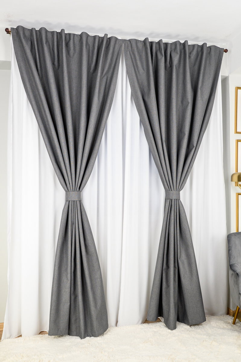 Set Meirym - Perdea Matase Alba Nobila si Draperie din In Perfect Blackout 100% Gri Antracit