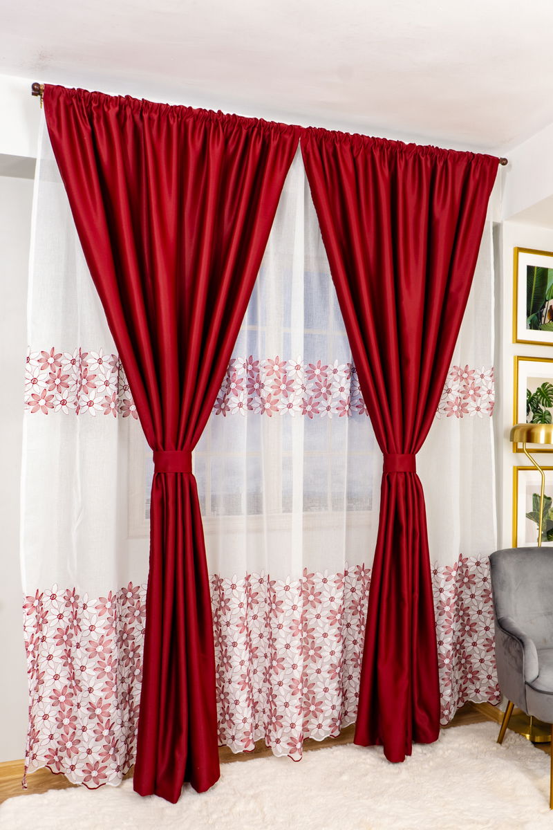 Set Monzza - Perdea din In Zambet Visiniu cu Alb PERD039D_300X245_D3_01_ATL si Draperii Visiniu Intens BOTD006_145x245_C2_07_ATL cu Rejansa Set_ATL