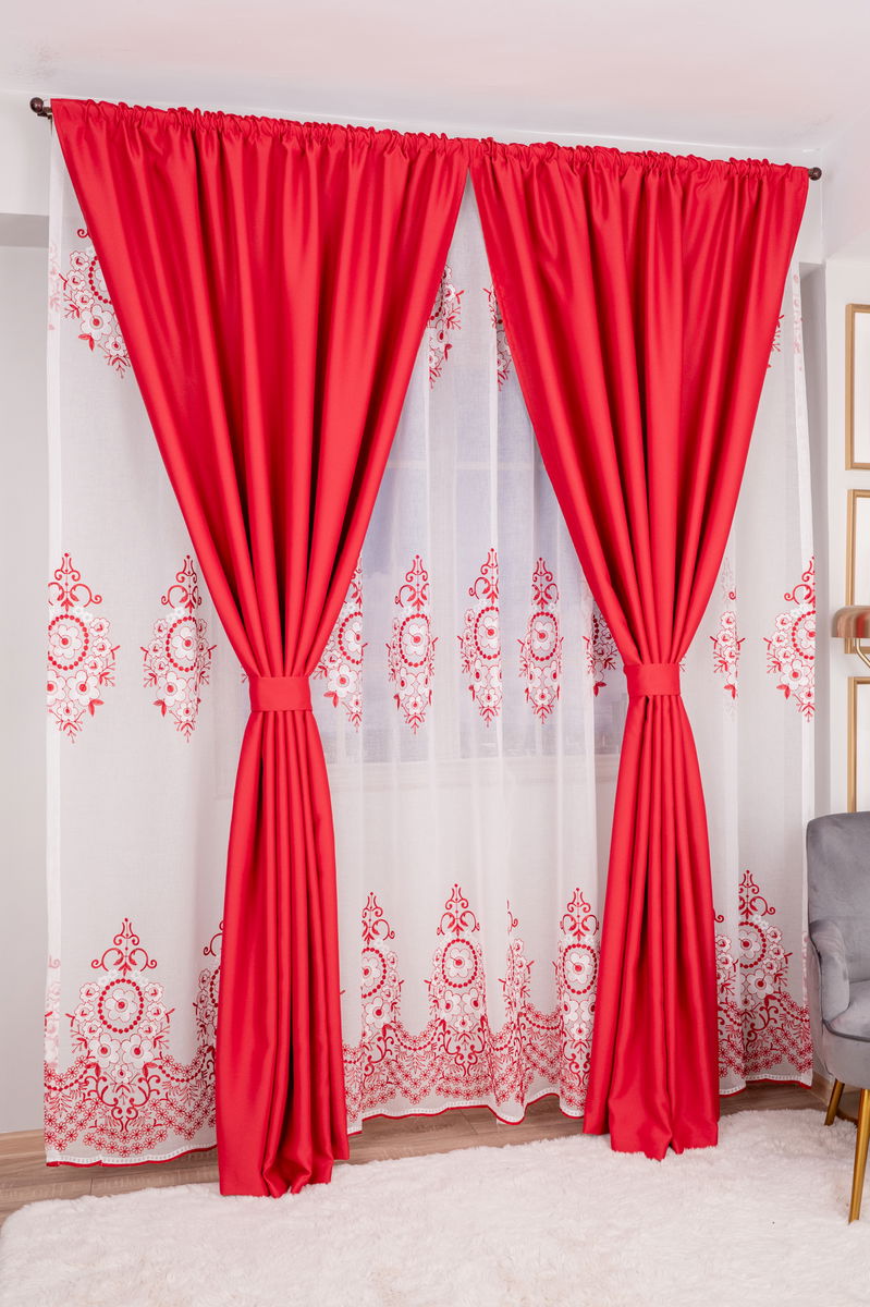 Set Rosalia - Perdea din In Lavinia Rosu si Draperie Blackout Rosu Rafinat