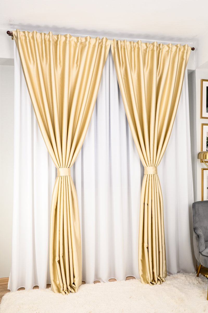 Set Santa Clara - Perdea Matase Alba Nobila si Draperie Blackout 100% Perfect Crem Metalizat