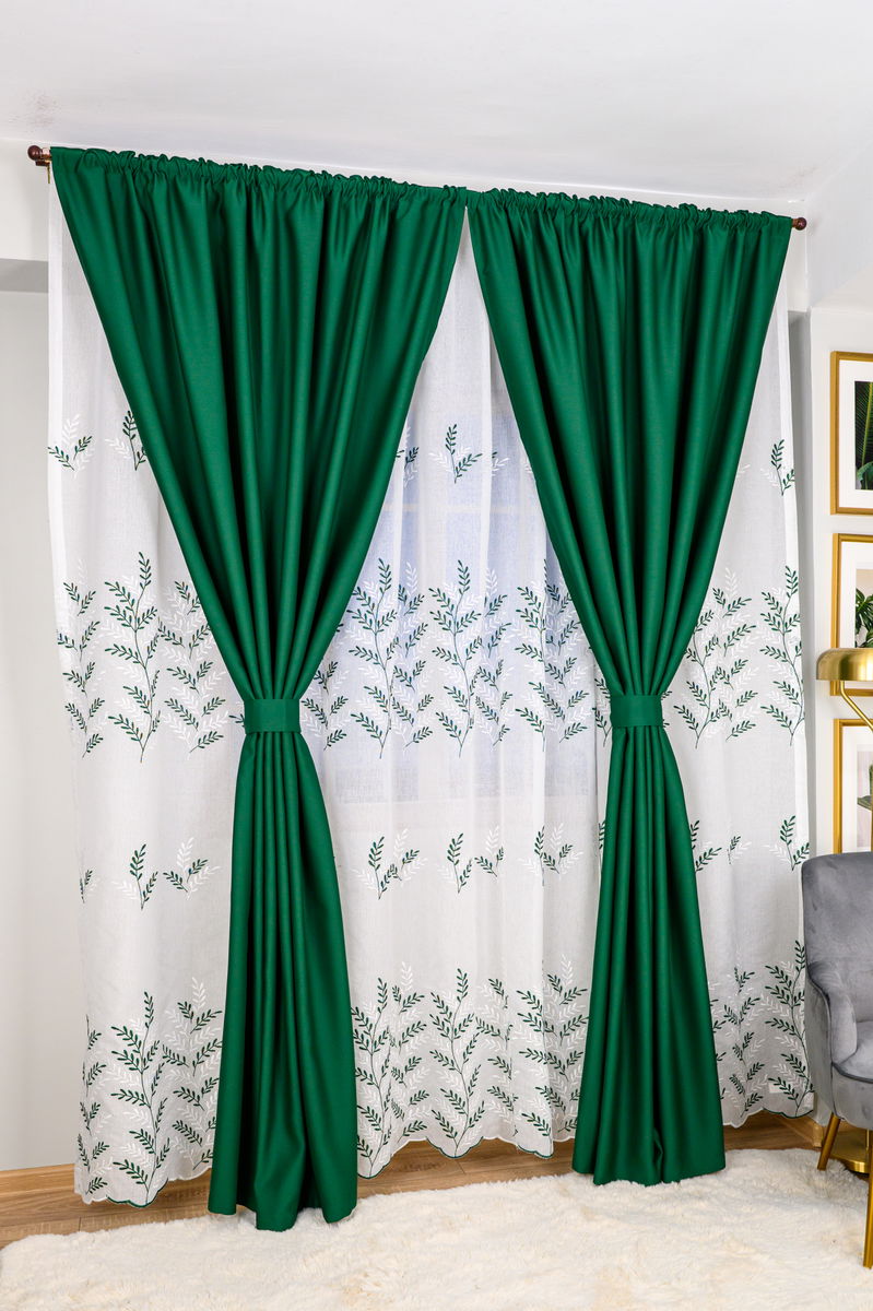 Set Sore - Perdea din In Eteric Verde si Draperie Blackout Verde Smarald