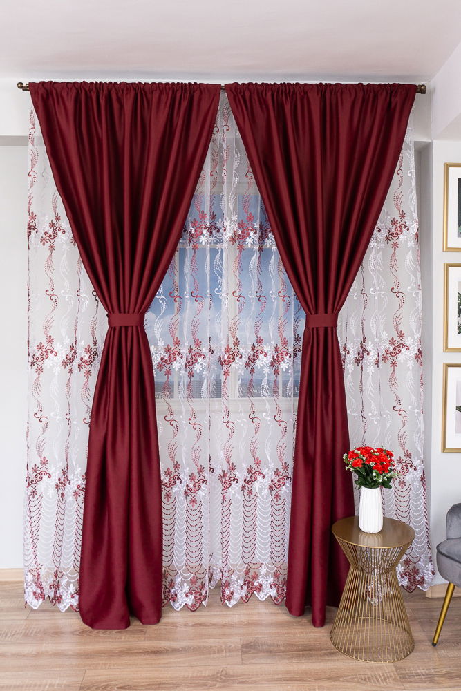 Set Monica - Perdea din In cu Fluturasi Turcoaz si Draperie Turcoaz Blackout Eleganta