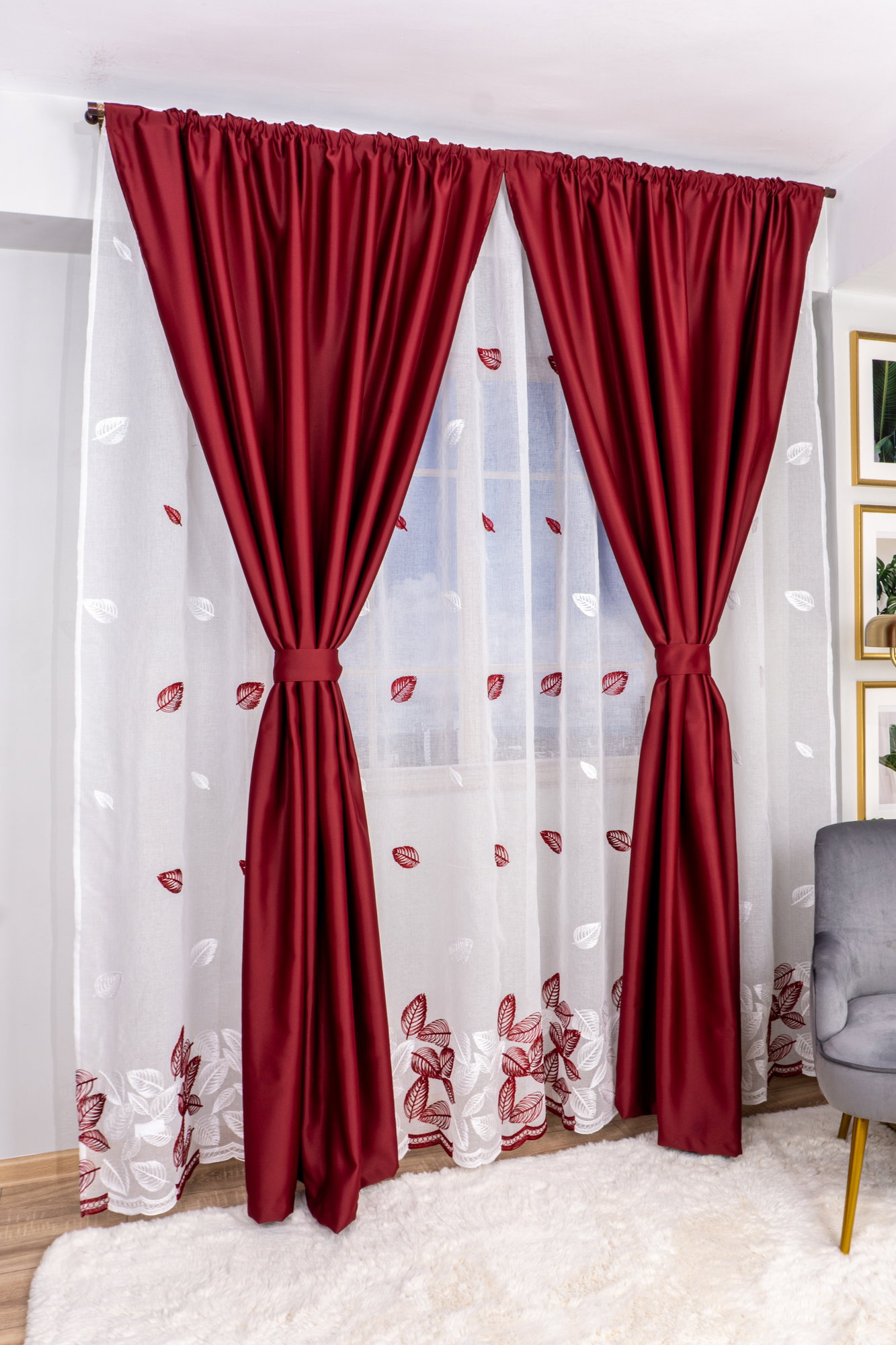 Set Natasha - Perdea Alba Voal PERD007_300x245_D1_20_ATL si Draperii Rosu Soft - BOTDA509_100x245_A3_06_ATL cu Rejansa Set_ATL
